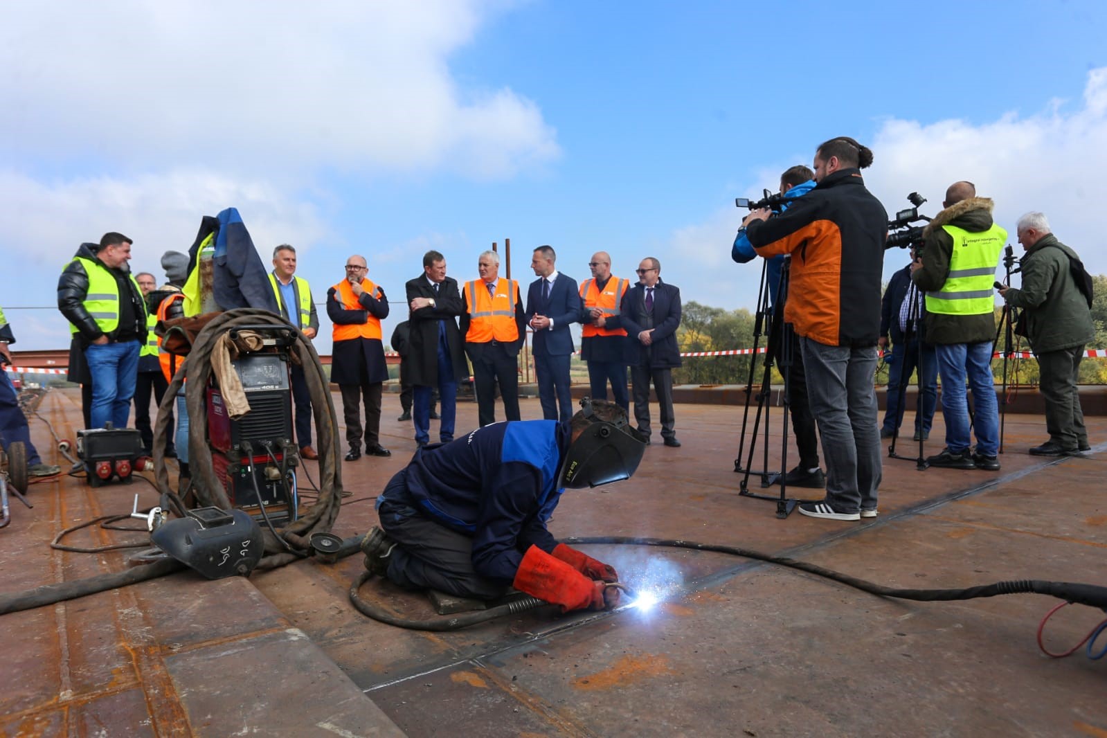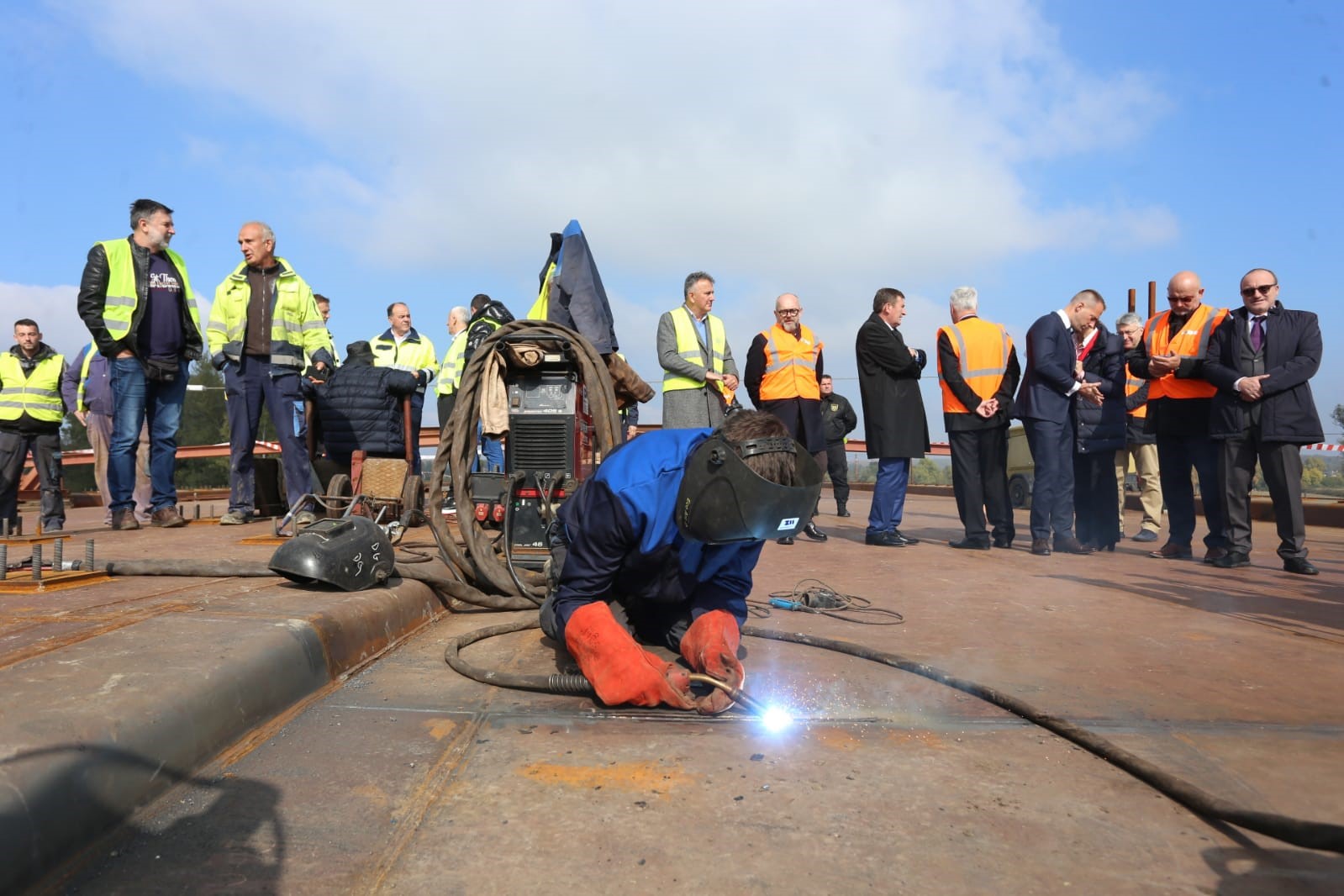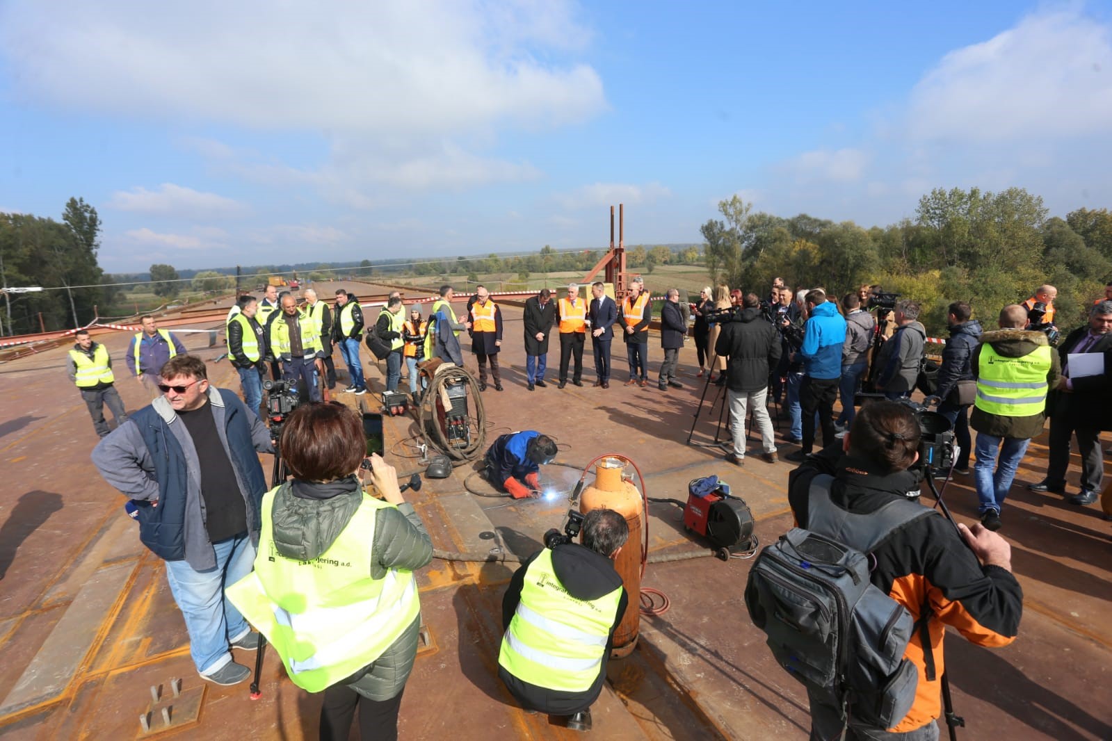 Svečano spojen most preko rijeke Save kod Gradiške